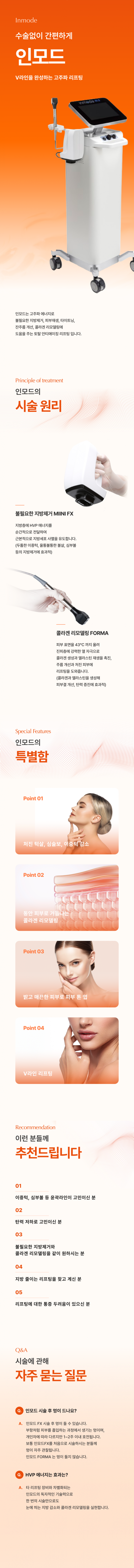 *인모드 FX : 고주파, 고전압으로 불필요한 지방세포의 사멸을 도와 얼굴라인을 정리